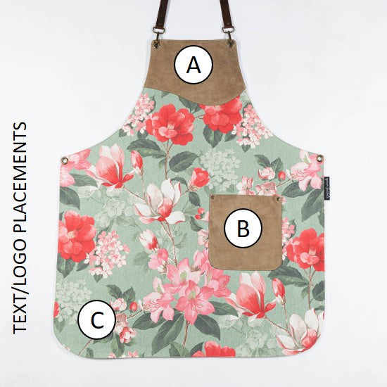 A quality printed light cotton 100% with oval cut, brown suede leather, cross-back straps for comfortable fit and suede leather patch pocket.