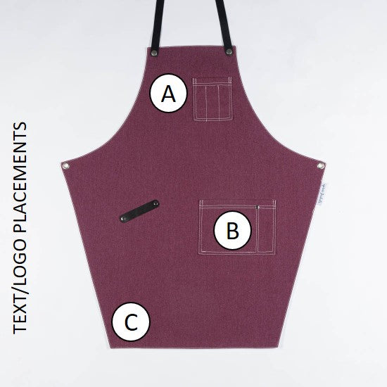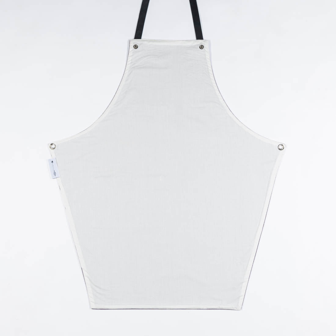An ultra durable canvas with diamond cut, cross-back straps for comfortable fit, two separated textile patch pockets and towel holding strap.