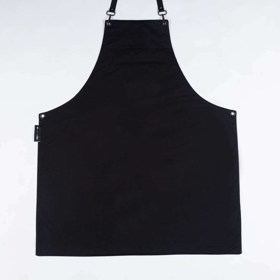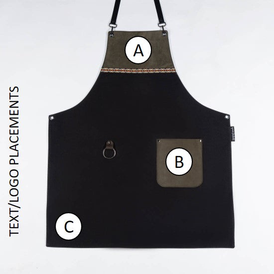 An ultra durable waterproof canvas with squared cut, leather chest part with aztec lining, cross-back straps for comfortable fit, olive green leather oval pocket and leather towel ring strap.