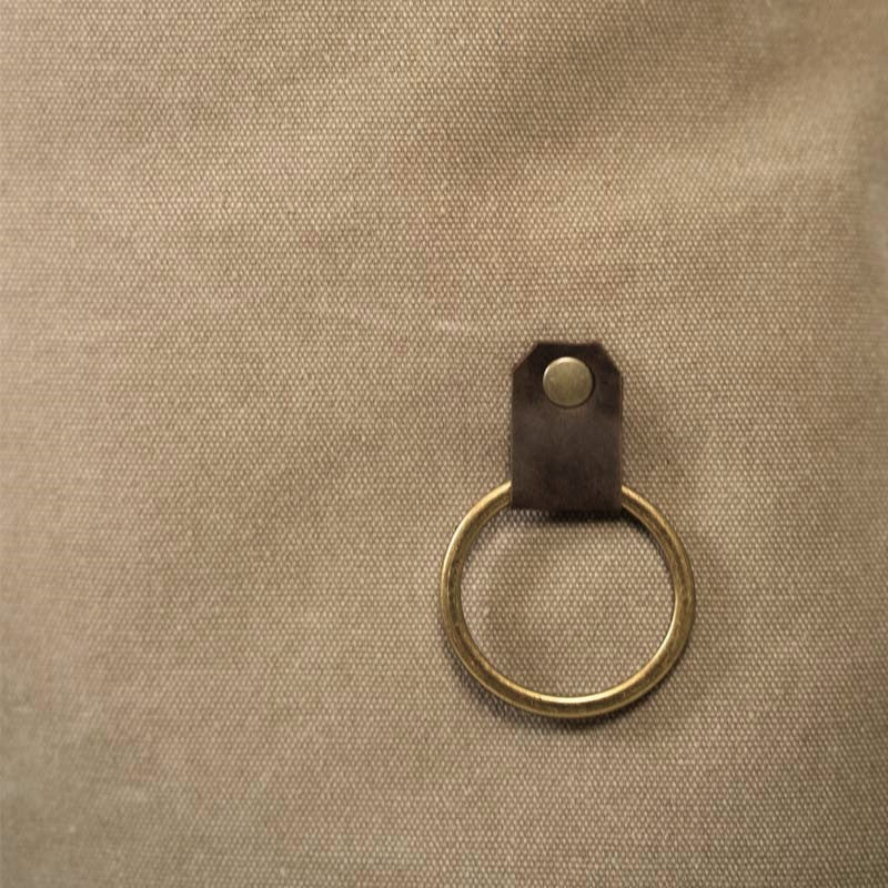 - Pockets: Textile mustard patch pocket with top lining and dark brown leather towel ring.
